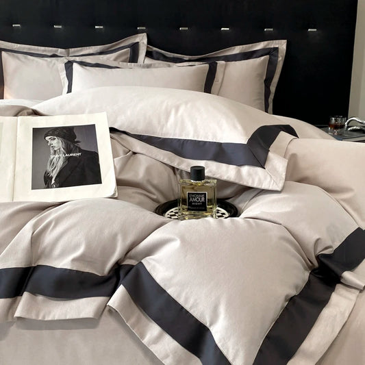 Premium 100% Cotton Brushed Luxury Solid Color Hotel Style Bedding Set Wide Edge Duvet Cover Bed Sheet/Fitted Sheet Pillowcases