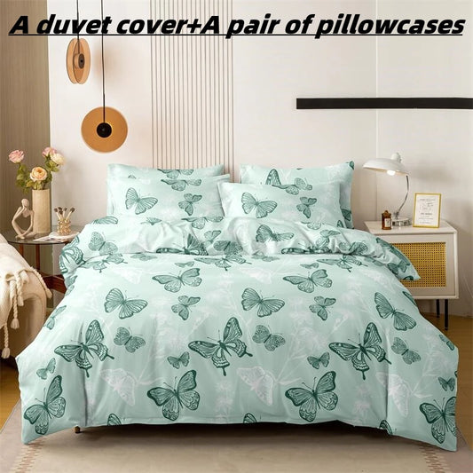 Elevate Your Bedroom Decor with Our Stunning Butterfly Printed Duvet Cover Set - Luxurious Queen Size Comfort Awaits!